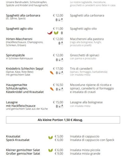 Il nostro team è orgoglioso di onorare le tradizioni dei nostri antenati, integrando al contempo approcci innovativi in cucina. Crediamo che il buon cibo unisca le persone e crei ricordi indimenticabili. Venite a trovarci e assaporate l’atmosfera unica che rende la Gasthaus Schlecht’n Seppl così speciale.